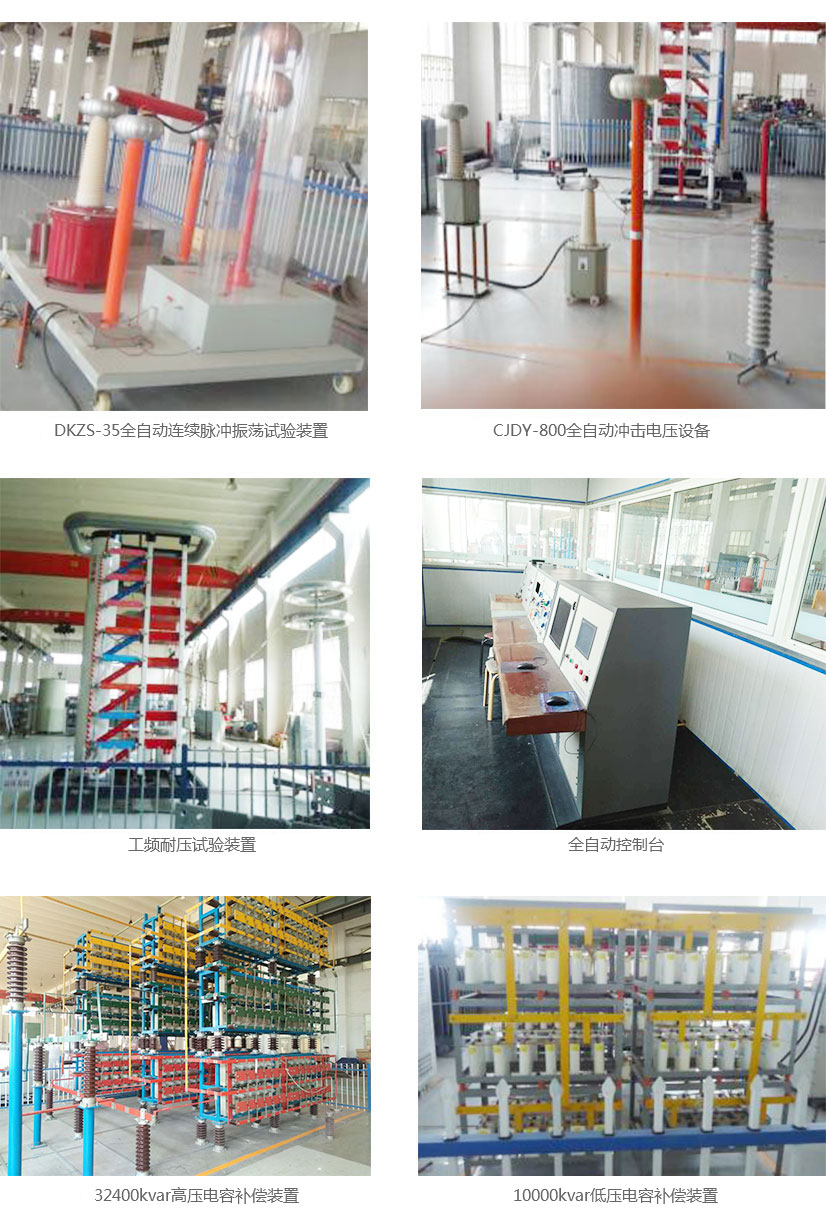 高壓試驗(yàn)站現(xiàn)有試驗(yàn)設(shè)備60 臺(tái),其中CJDY-800的雷電沖擊設(shè)備1套,DKZS-35全自動(dòng)連續(xù)脈沖振蕩試驗(yàn)裝置一套,32400kvar高壓電容補(bǔ)償裝置1套(高壓電容器216只),10000kvar低壓電容補(bǔ)償裝置一套(高低壓電容器278只),各種容量的中間變3臺(tái),低功率測(cè)試儀1臺(tái),F(xiàn)ULKE溫升測(cè)試設(shè)備1臺(tái)。