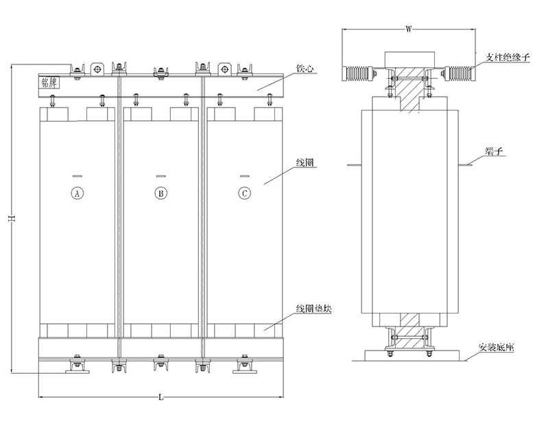 我公司生產(chǎn)的鐵心并聯(lián)電抗器,主體結(jié)構(gòu)包括:鐵心和線圈兩大部分。
